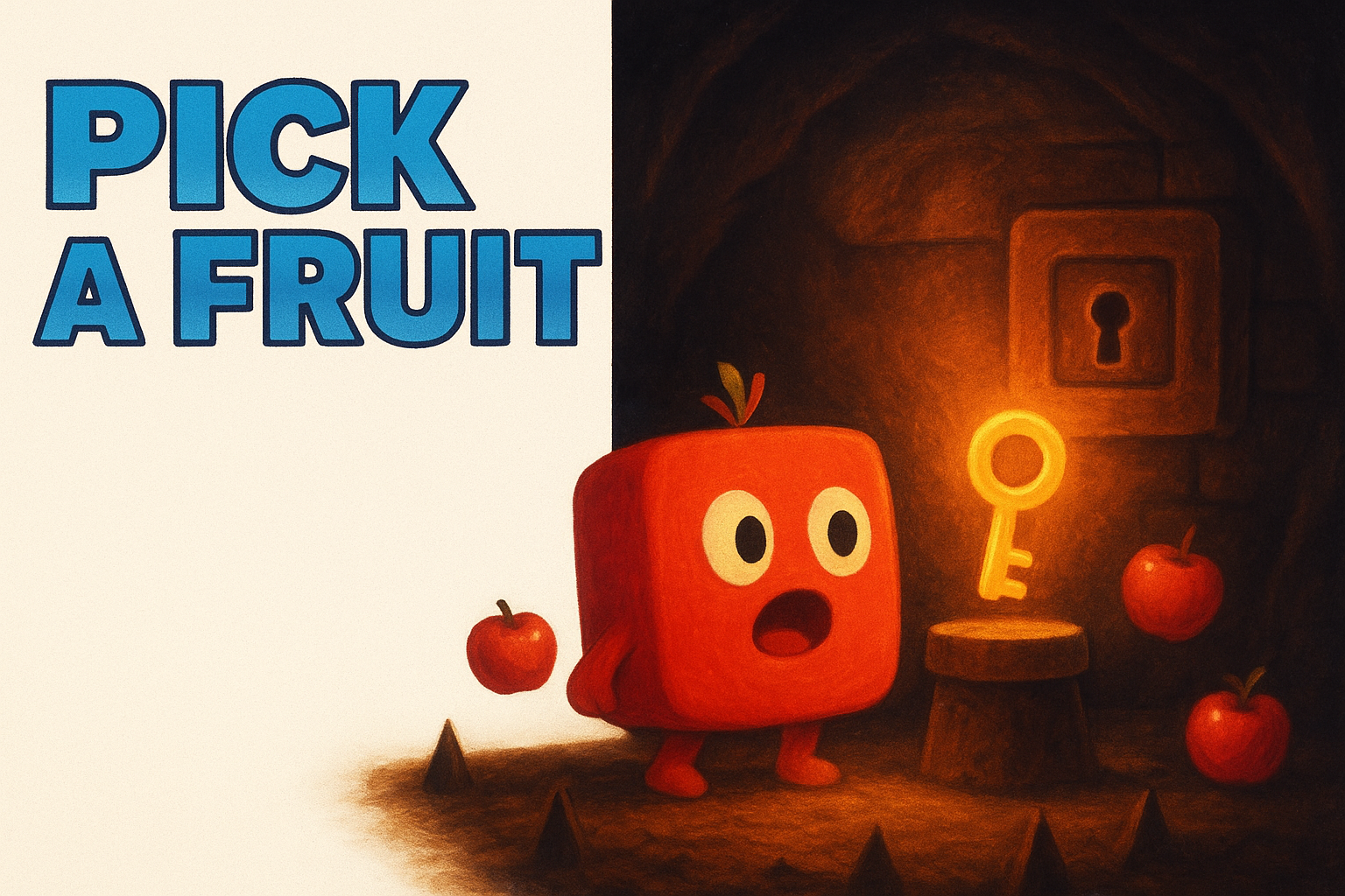 Pick a Fruit is a retro puzzle game where you guide a goofy red square on a quest to collect fruits, dodge spikes, and find the key to unlock each level. Inspired by classic NES adventures, it blends simplicity, clever challenges, and a lot of pixel charm.